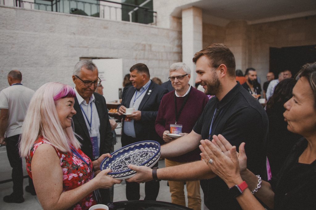 Liidu kingituse - vaagna Hebroni keraamikutelt - andsime üle sümbolina Jumala heldusest ja teenimisest kui inimeste oma laua ümber kutsumisest.
