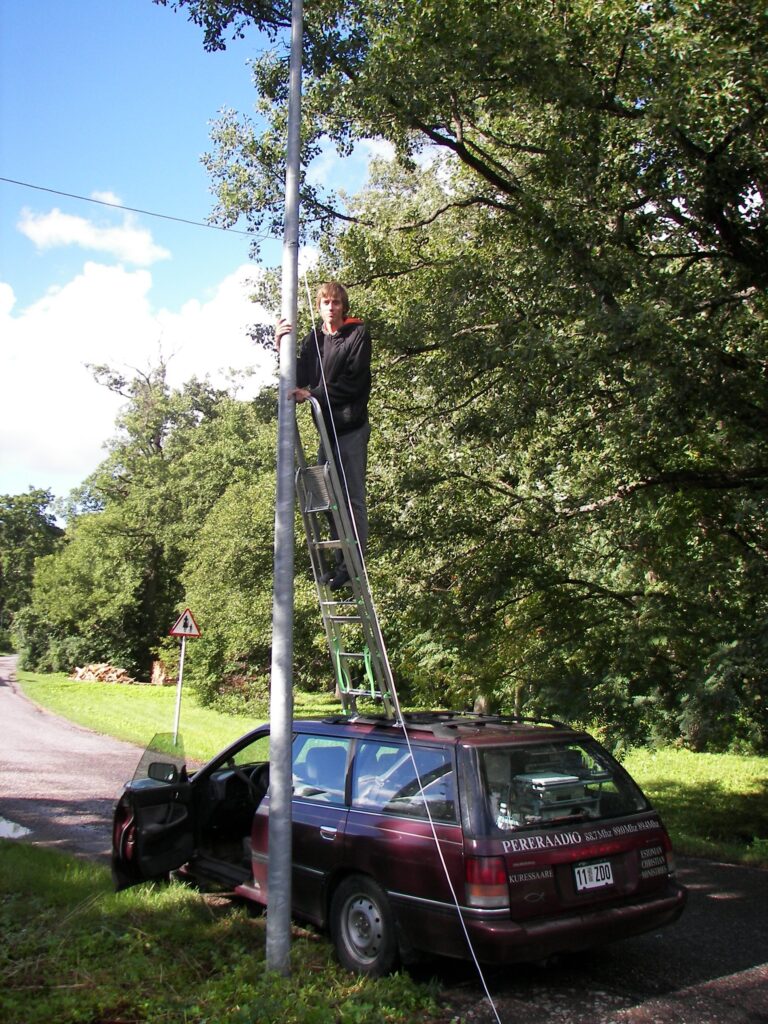 Valter: Mul on üks pilt, kus ma ise ka redeli peal olen. Meil on vähemalt kolmes kohas olnud selline pikk juhtmete vedamine. Hiiumaal ja Pärnus ka jälle baptistiliidu suvepäevadel, muide.