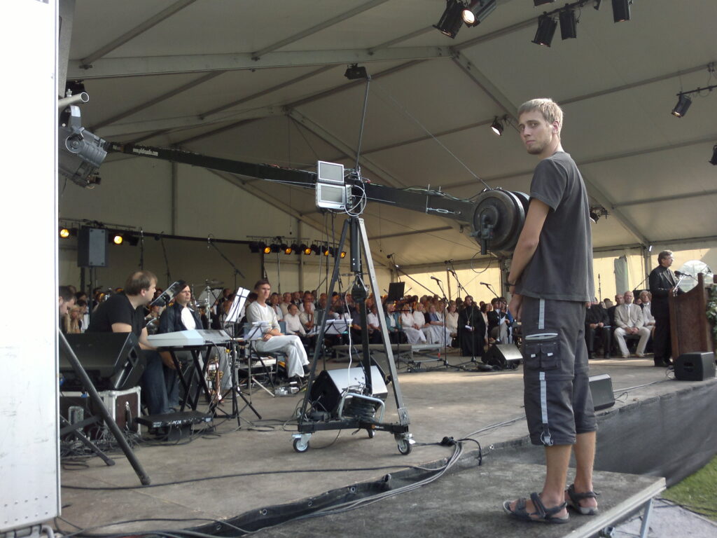Valter: Edasi arendasime selle kraanaversiooni, mida praegu kasutame. Üks kord, kui läksime Riiga Nathan Morrise koosolekut salvestama, võtsime oma kraana igaks juhuks kaasa. Neil kohapeal midagi sellist ei olnud. Pakkusime välja, et proovime seda ka kasutada. Seepeale anti koosoleku korraldaja suur kaamera sinna otsa ja filmiti kogu suurt 4000–5000 inimesega koosolekut.